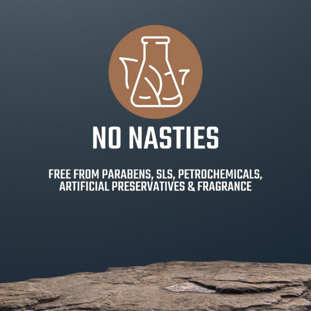 + FREE FROM PALM OIL, PARABENS, SLS, PETROCHEMICALS, ARTIFICIAL PRESERVATIVES & FRAGRANCE